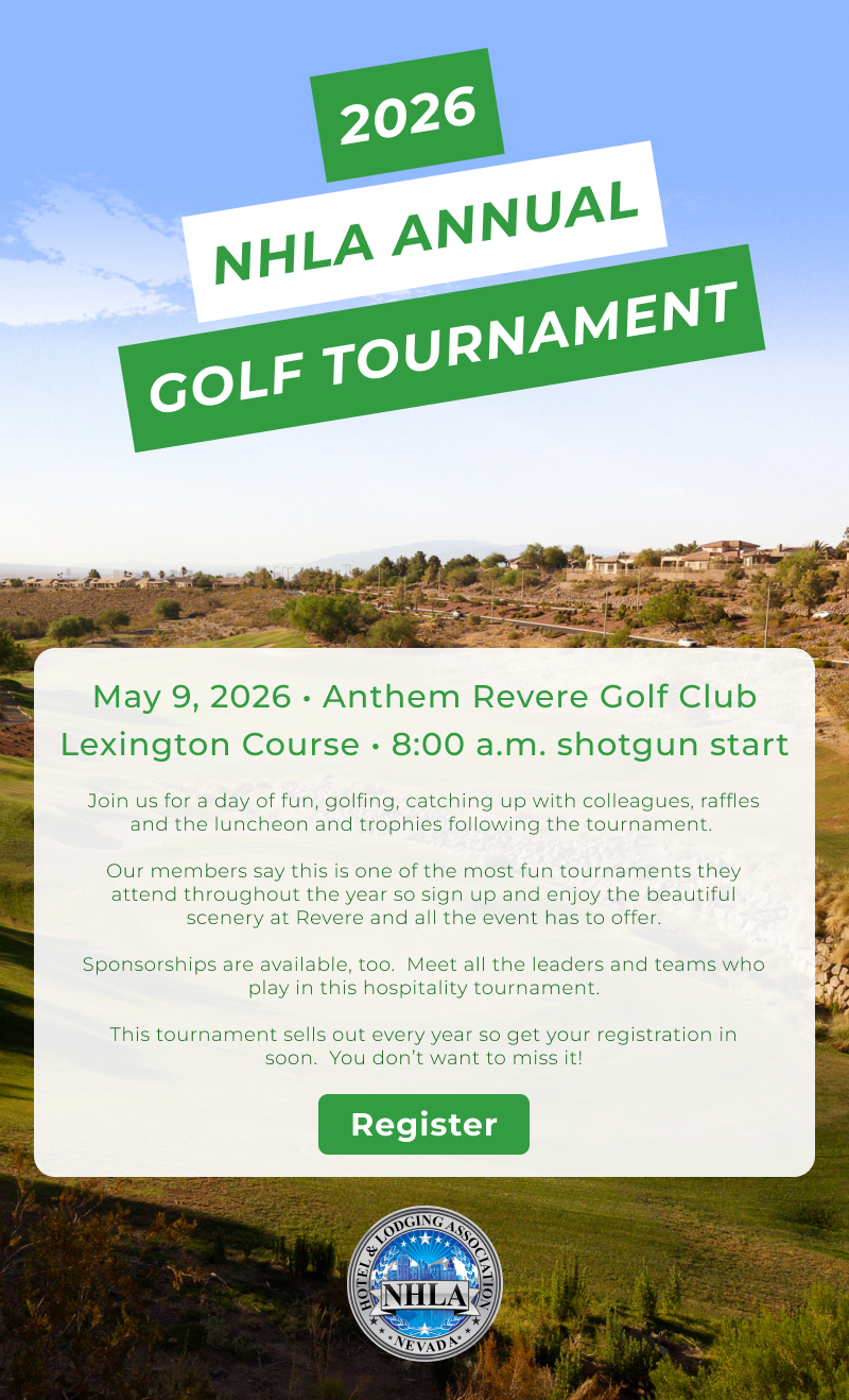 NHLA does not render, imply nor offer legal advice at any time. Nothing on this page should be construed as legal, financial or medical advice. Information and resources are provided as communication for our members to help keep them apprised of issues and to help them make their own informed decisions. We strongly recommend members seek legal advice from their company representatives when needed. Copyright © 2026 Nevada Hotel & Lodging Association |