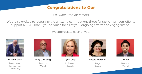Congratulations to each of our Top Volunteers of Q1! We will be celebrating in a few weeks taking our super stars out for an evening of fun. Thank you to all for being such an important part of NHLA and for all of your contributions to its success.
